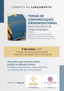 Temas de comunicação organizacional – dos conceitos às interconexões é o título do livro que está sendo lançado no dia 9 de maio de 2026, às 10 horas, no Espaço do Conhecimento da UFMG. A obra é uma coletânea organizada em comemoração aos 20 anos do Grupo de Pesquisa  Comunicação no contexto organizacional: aspectos teóricos e  conceituais (Dialorg), da Pucminas. Organizado por Ivone de Lourdes Oliveira, Polyana Inácio Rezende Silva e Márcio Simeone Henriques, reúne trabalhos de diversos integrantes do grupo e também do Grupo IPÊ/UFMG, resultados de muitos anos de construção conjunta. Pretende oferecer uma referência para estudos de comunicação organizacional em diversos temas que tem sido tratados, bem como material para uso didático nos cursos de comunicação.